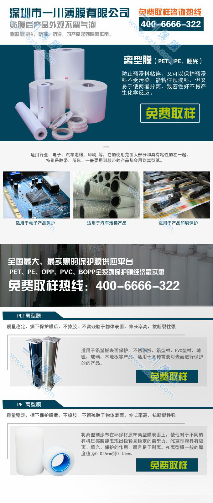 透明的PET膜有良好的耐溫性能,平滑度和強(qiáng)度。適用于電子產(chǎn)品、醫(yī)療、不干膠、標(biāo)簽以及玩具、高級(jí)化妝品的包裝等;根據(jù)離型面可以分為單面離型和雙面離型;根據(jù)離型劑可以分為有機(jī)硅膠離型紙、有機(jī)氟離型紙以及其他離型材料離型紙。
